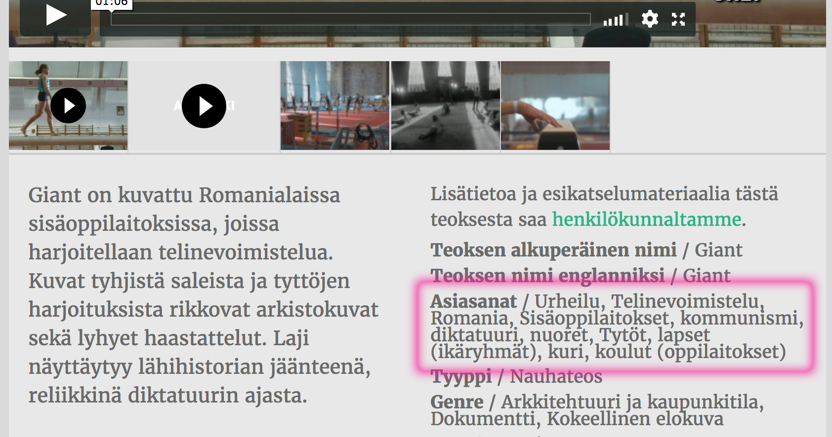 AV-arkissa kuluvan vuoden aikana toteutetun tietokantojen ja verkkopalvelun kehittämistyön tuloksena arkistostamme löytyviä teoksia on nyt mahdollista asiasanoittaa. Käytämme tässä työkaluna yleistä suomalaista asiasanastoa.