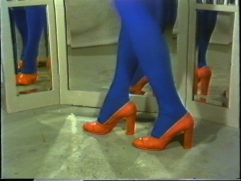 Teoksessa Angelo (1981) (artikkelikuva) tarkastellaan tanssiaskeleita epätavallisesta perspektiivistä. Aluksi kenkien maalaus ja elokuvakatkelma, jossa tuolileikki. Aina joku meistä putoaa tyhjään rakoon. Sen jälkeen pitkä tanssi lasilevyllä, jota on kuvattu jalkojen alta.