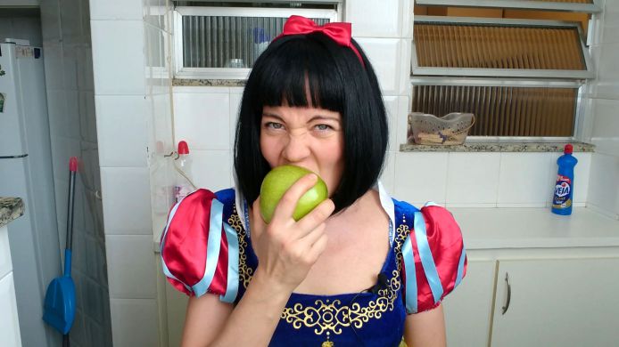 One has hair black as ebony tree, other skin white as snow. Video art piece about Cross-generational experiences, gender, sexuality, black and white. How can Snow Whites rewrite, reinterpret and mess -up the messed up story.