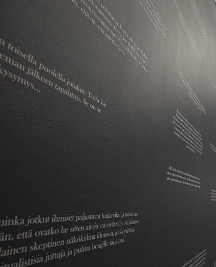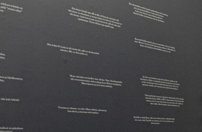 This audio work, Flesh and Bones (2021, re-edited in 2024), is based on real interviews I conducted during my artist residency at the Finnish Cultural Institute in New York in 2019. The sections are titled About the Future, Flesh and Bones, and Meeting the Spirits.