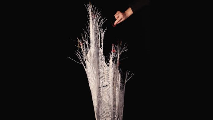 art, clothing textiles, creativity, media art, motion, performance (art forms), scarves, science, static electricity, still lives, video art, video installations