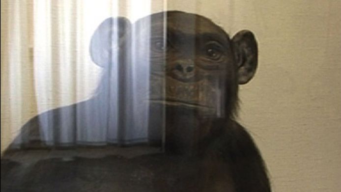 In Untitled (a portrait), we see a chimpanzee with a lively expression gazing towards us. But as the only movement we see in the image comes from reflections on glass, we realise the chimpanzee is inside a case in a museum, and the movement is that of the visitors who are actually looking at him. As is well known, chimpanzees are one of the closest kin among species for us humans, sharing more than 94% of identical DNA. It has been said that the cognitive skills of an adult chimpanzee resemble those of a 4-year old child, undoubtedly with other species-specific skills which remain outside our understanding. Still, none of us are seen in the cases of natural history museums – the difference, however small, seems crucial. As the chimpanzee is portrayed as an example of its species, we are portrayed as individuals in the art history museum next door. The difference between "it" and "him" becomes more visible.